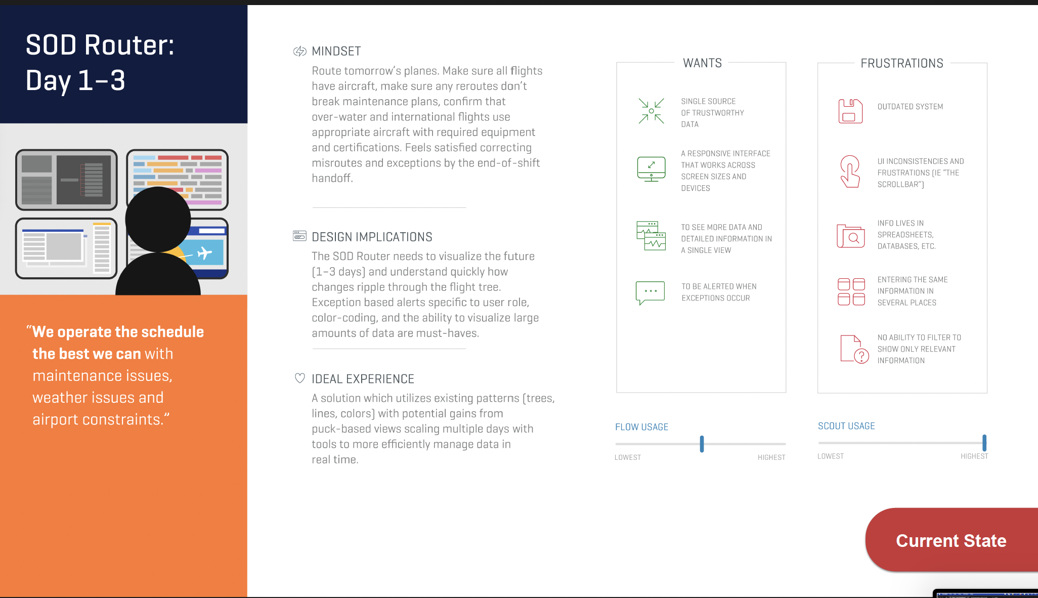 Ops Suite focuses on replacing Southwest Integrated Flight Tracker(SWIFT), a 20+-year-old software system consisting of many different applications that the operations team in the Network Operations Control (NOC) uses daily. SWIFT is a robust set of tools that allows users to complete their jobs promptly and keep Southwest operations moving smoothly. However, the long-term goal is to transfer most of the functionality from SWIFT to OpsSuite. In addition to SWIFT, there are various other apps, websites, Excel documents, and more that people use daily to complete their jobs.